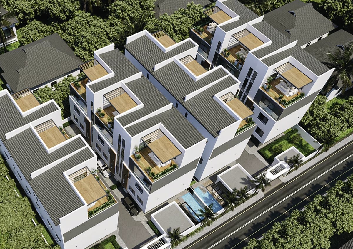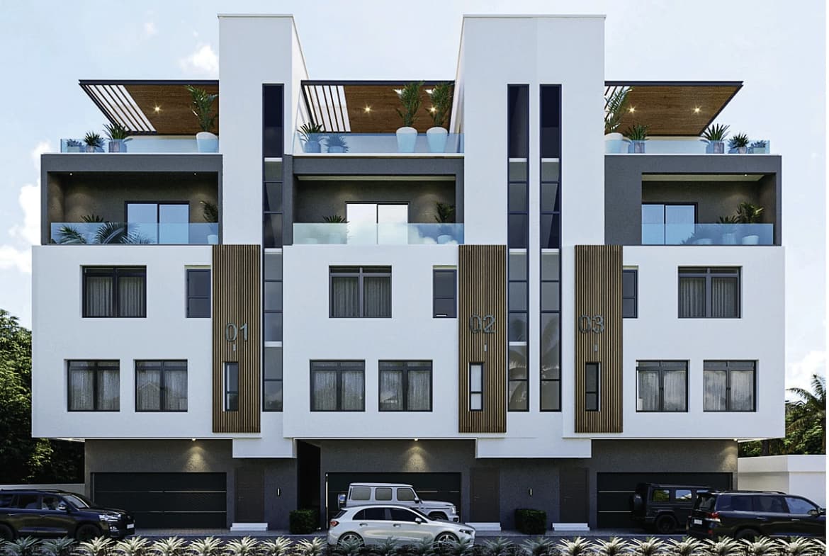 Oaks Wood presents an exceptional opportunity to experience sophisticated urban living within the prestigious Banana Island. This exclusive development comprises luxury terrace residences designed with an emphasis on elegance, privacy, and refined comfort. Each home is an architectural masterpiece, offering expansive multi-level living spaces that seamlessly blend modern style with high-end functionality. Residents enjoy a lifestyle of unparalleled convenience, featuring private internal elevators and dedicated rooftop lounges designed for breathtaking relaxation and social gatherings